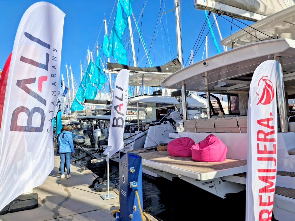 Bardzo silną reprezentację miały znane i lubiane marki katamaranów Legoon i Bali. Dostępne były wersje od 39 do aż 58 stopowych nowoczesnych jednostek. W ich przypadku wszystkie modele były dostępne do zwiedzania i to właśnie te katamarany cieszyły się największym zainteresowaniem na całych targach. Było nam bardzo miło spotkać polskiego dystrybutora marki BALI, Marka Stryjeckiego. Jako ambasador tej marki od wielu lat zapewnia kupującym dostęp do tej cieszącej się coraz większym zainteresowaniem francuskiej marki katamaranów.