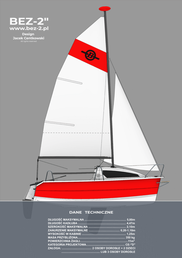 Nowa konstrukcji Jacka Centkowskiego z roku 2025 – Bez 2” – to niemal kanoniczna postać małego jachtu kabinowego z laminatu. Patrząc na kształty, proporcje bryły oraz „kreskę” [styl] bez wątpienia znajdziemy charakterystyczne cechy popularnej – blisko pół wieku temu żaglówki Bez 2.