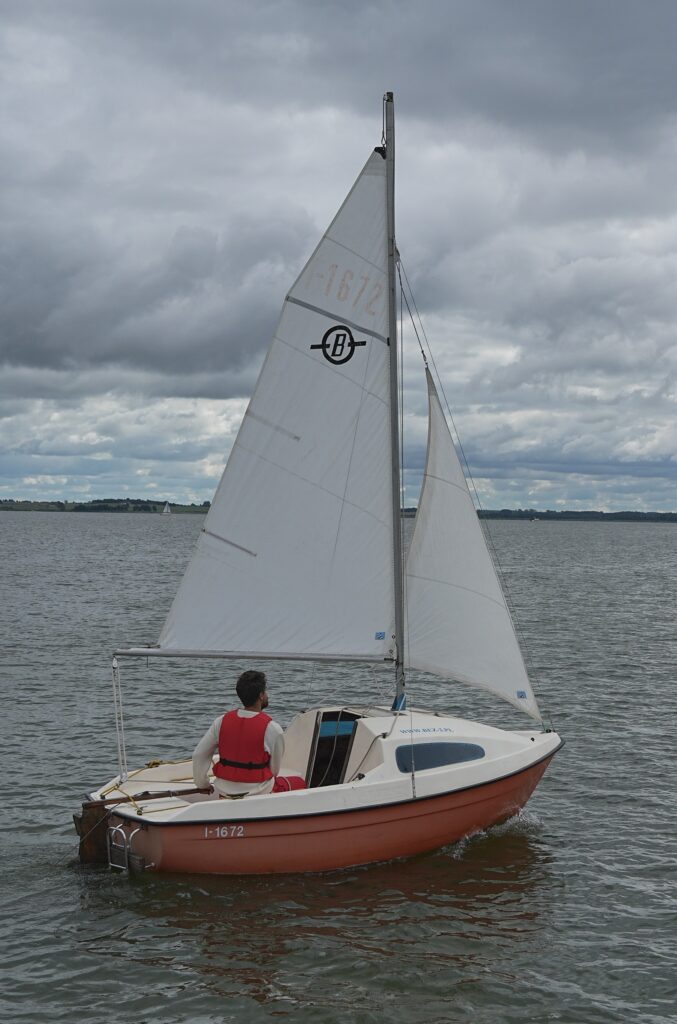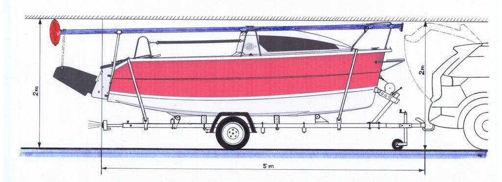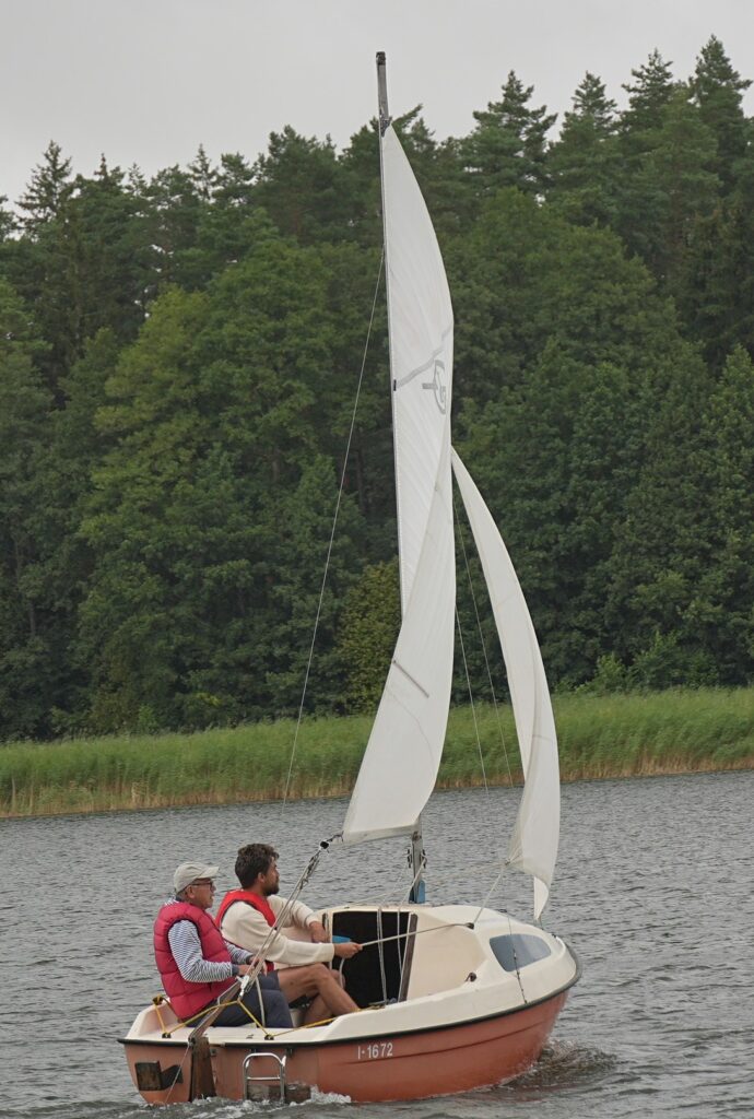 Ułamkowy takielunek „3/4” tworzy umiarkowanie wysoki maszt z aluminiowego profilu, który jest podtrzymywany jedną parą want oraz sztagiem; na topie – zbiornik wypornościowy zapobiegający przed „zrobieniem grzyba” po ewentualnej wywrotce. Analiza stateczności wskazuje, że jacht leżący na burcie – przy niewielkim „wsparciu” załogi – wstaje. Duża strzałka liku tylnego grota umożliwia „wpisanie” łącznie 11 metrów kwadratowych powierzchni żagli na 5,5-metrowym maszcie, postawionym „na czterech metrach długości”; talia zamocowana na noku bomu prowadzona jest na pawęży – nie „wadzi nikomu” w niewielkim w końcu kokpicie; bom – z refpatentem; szoty foka z rogu halsowego żagla biegną na dach kabiny, tu też wyprowadzone są fały żagli, i do tego fał miecza na wspomnianym przetłoczeniu dna kokpitu – całe olinowanie ruchome jest pod kontrolą sternika, co za tym idzie nawet niewprawny załogant bez ruszania się z ławki ma możliwość – pod bacznym okiem „tego za ruplem” – obsłużyć olinowanie ruchome.